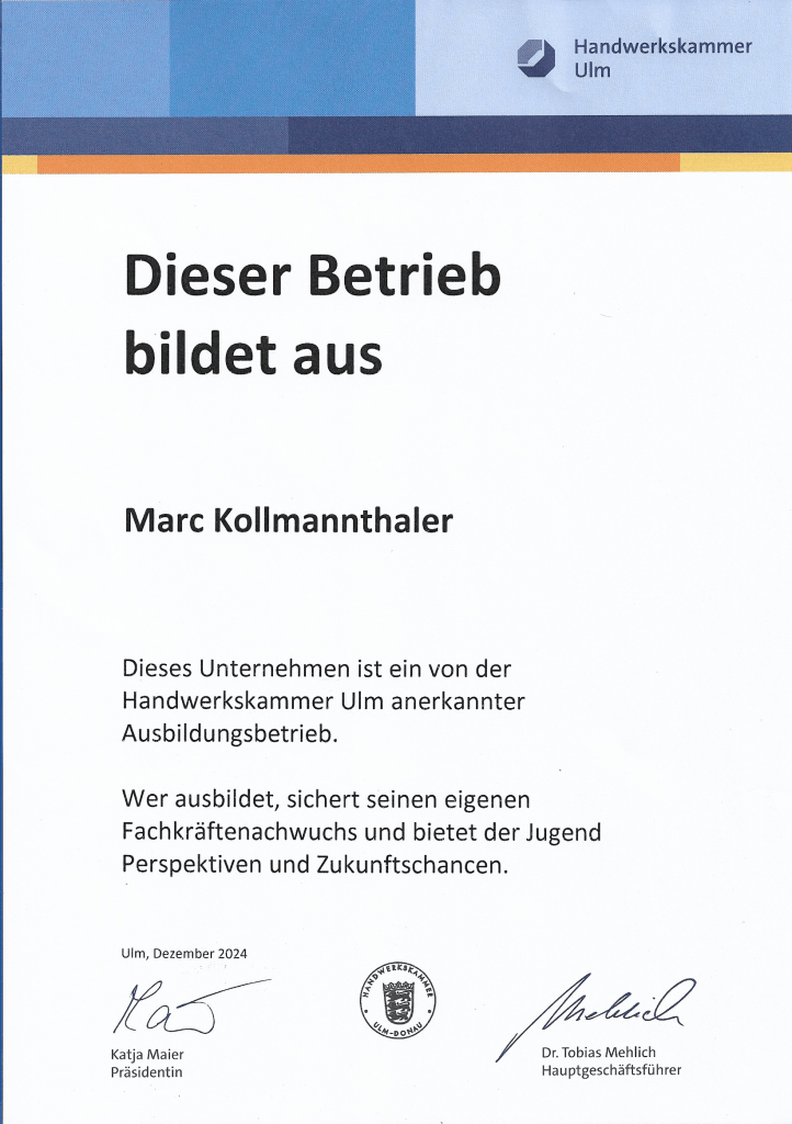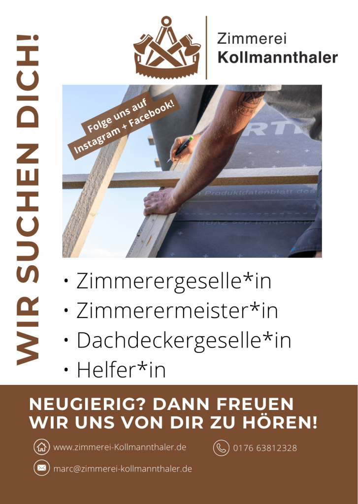 Firmeninhaber und Gründer Marc Kollmannthaler wurde bereits als Kind durch seinen Großvater sowie durch seinen Vater an das Zimmererhandwerk herangeführt. Schon früh stellt sich heraus, dass er diese Tradition in der Familie fortführen möchte. Schließlich beendet er im Jahr 2011 seine Lehre zum Zimmermann und sammelt anschließend einige Jahre Berufserfahrung. Seit dem Jahr 2020 besitzt er den Meistertitel im Zimmererhandwerk. Im selben Jahr gründet er seine eigene Zimmerei.